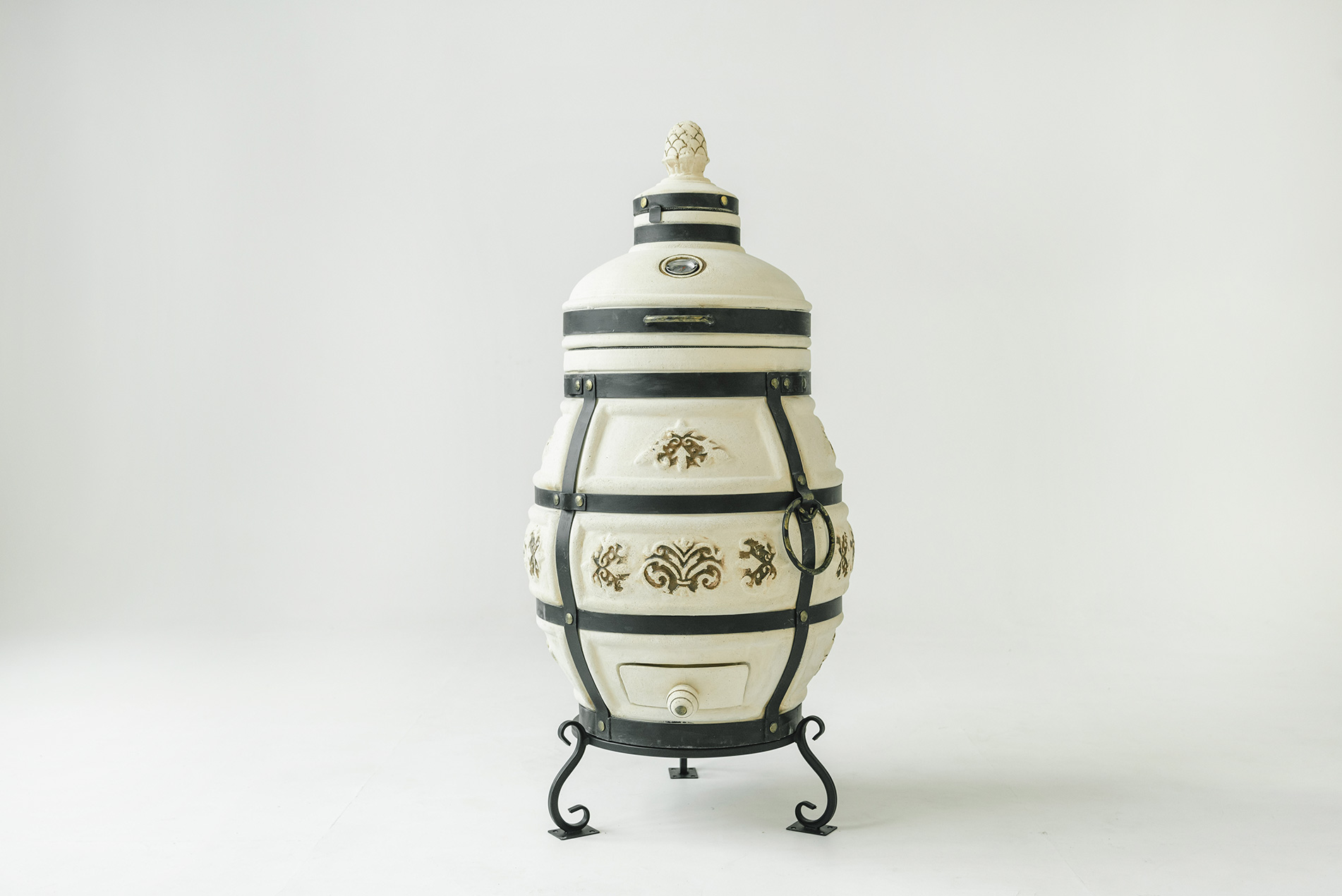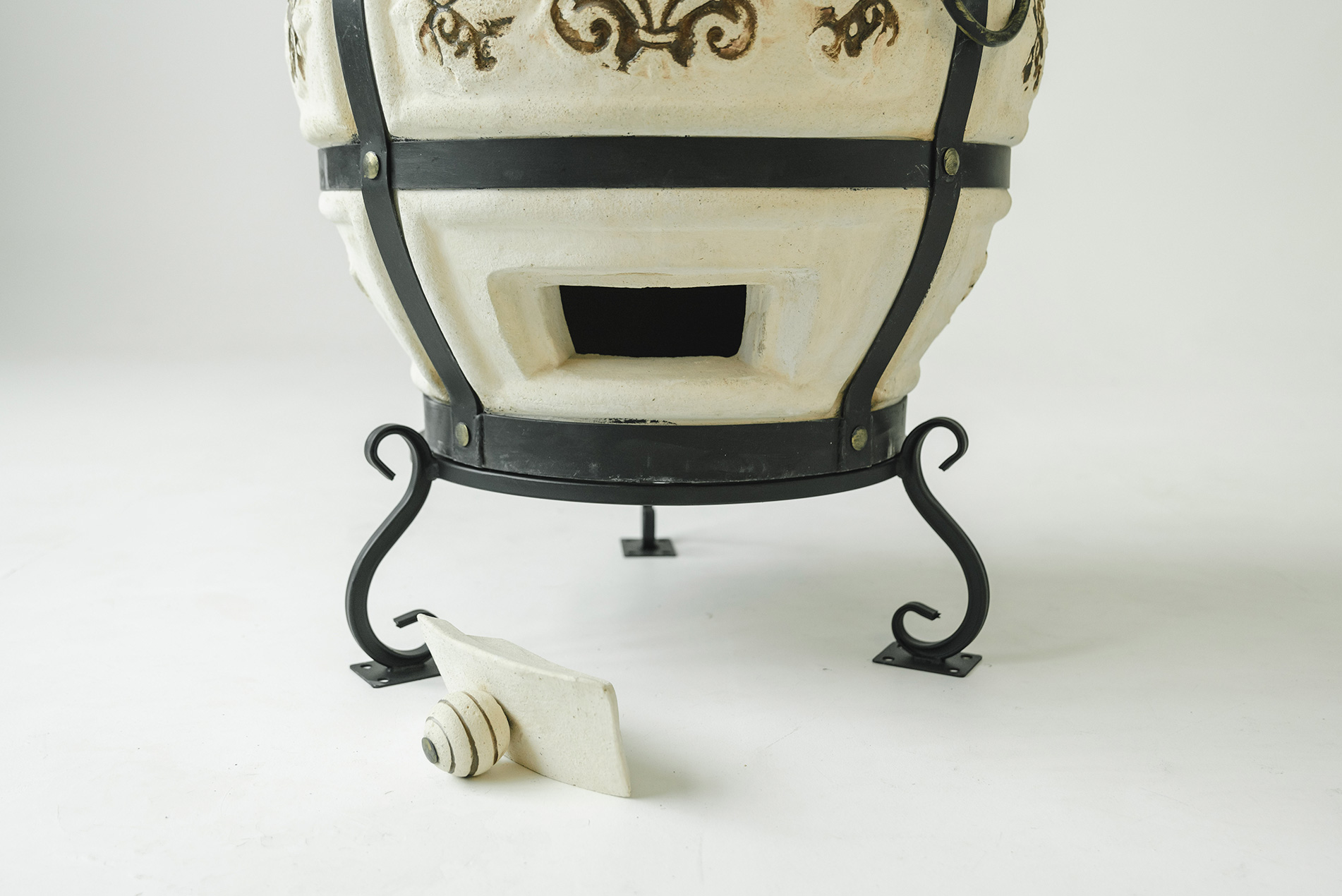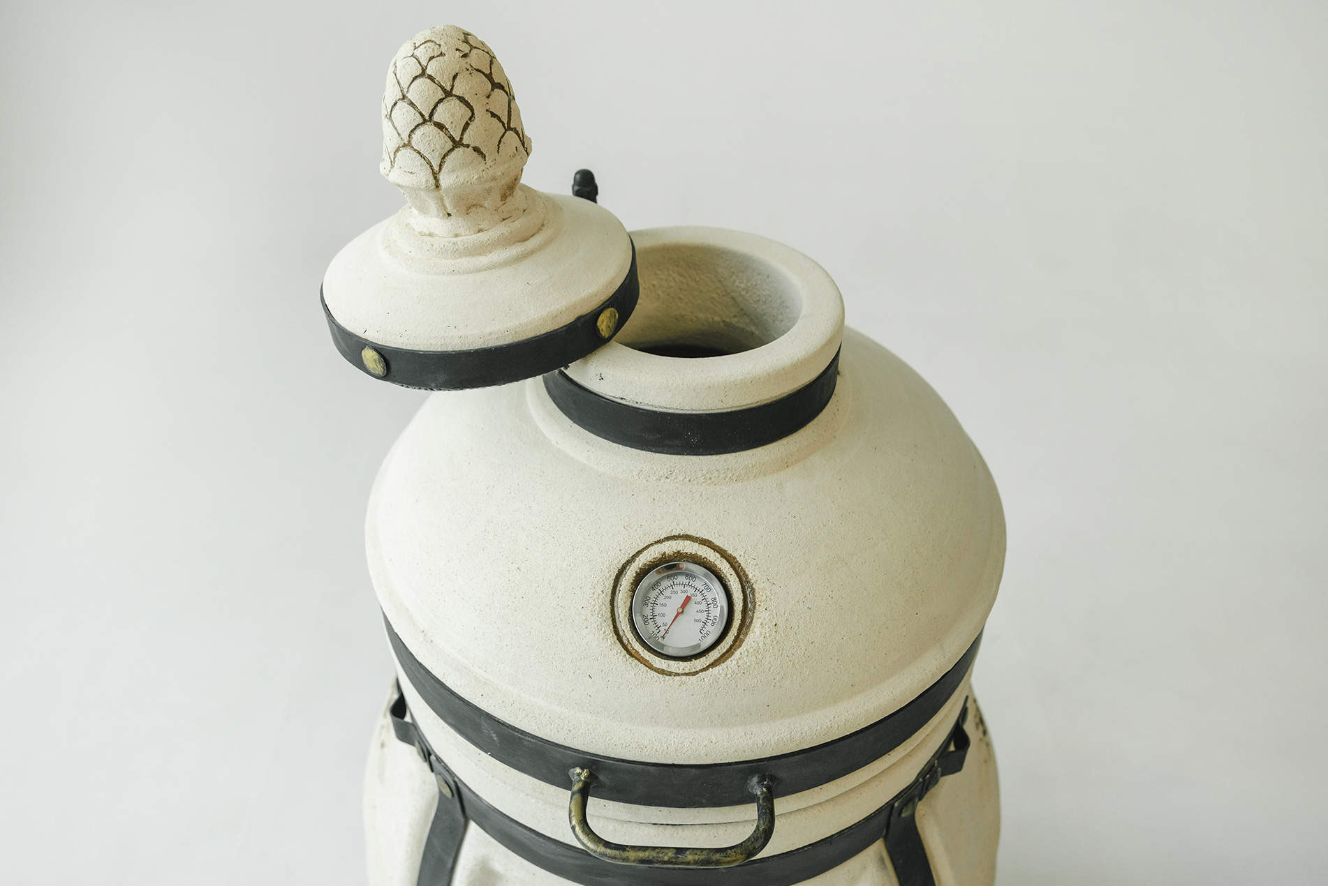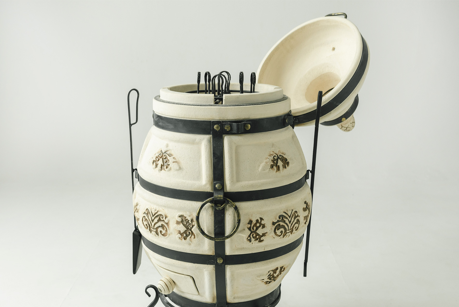 В новой версии увеличен диаметр тандыра до 58 см, высота до 106 см, а масса керамики выросла до 120 кг. Более массивные стенки обеспечивают стабильную температуру внутри тандыра и позволяют дольше сохранять жар.